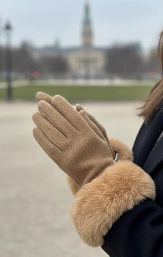 Fur trim gloves (faux)